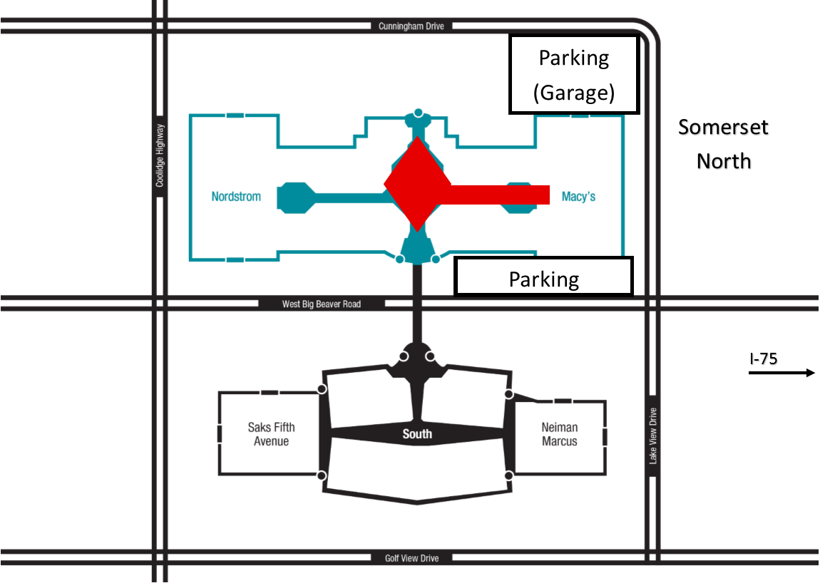 - Option 1 - Surface lot in front of Macy's (entrance off of Big Beaver and Lake View Drive)